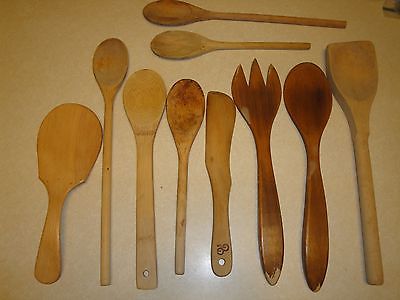Title (ebay affiliate link): Vtg Lot 10 Primitive Antique Wooden Wood Spoon Kitchen Spatula Utensil Farmhouse