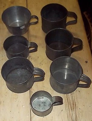 Title (ebay affiliate link): Set (7) ANTIQUE TIN HANDLED CUPS All Different Soldered Handles 1800s PATINA!!