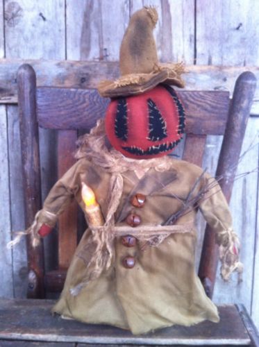 Title (ebay affiliate link): Primitive OOAK Pumpkin Scarecrow Doll make do makedo Candle grungy extreme Fall