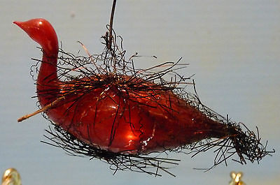 Antique RED SWAN BIRD MERCURY GLASS Ornament, Wire Tinsel Wings,Tail & Netting