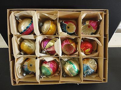Title (ebay affiliate link): 12 Hand Blown Painted Glass Fantasia Brand Christmas Ornaments Indents Micas