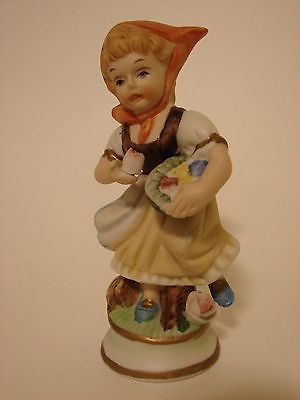 Vintage Antique Capodimonte Mark Porcelain Figurine GIRL with Flowers REDUCED