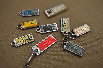 Title (ebay affiliate link): ANTIQUE MOTORCYCLE AUTOMOBILE VINTAGE KEY CHAIN MINI LICENSE PLATES LOT