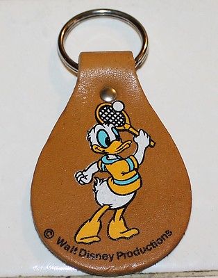 Title (ebay affiliate link): NICE VINTAGE DISNEY DONALD DUCK TENNIS PLAYER LEATHER KEY FOB KEYCHAIN NOS