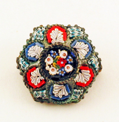 Antique Vintage Italian Handmade Mosaic Pin Brooch