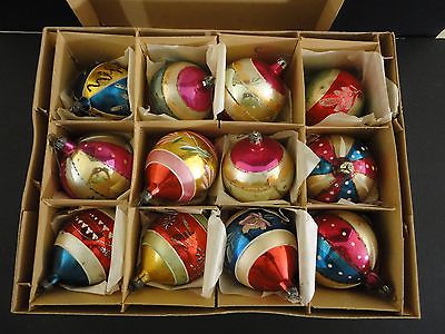 Title (ebay affiliate link): 12 Hand Blown Painted Glass Fantasia Brand Christmas Ornaments Teardrops Micas