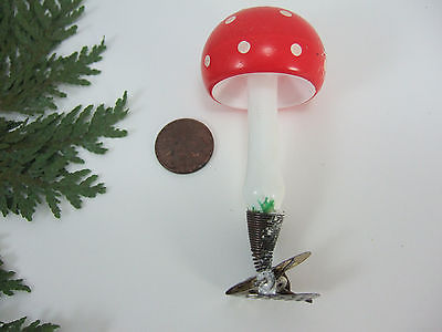 Antique Blown Glass Clip Polka Dot Mushroom Christmas Ornament-Germany