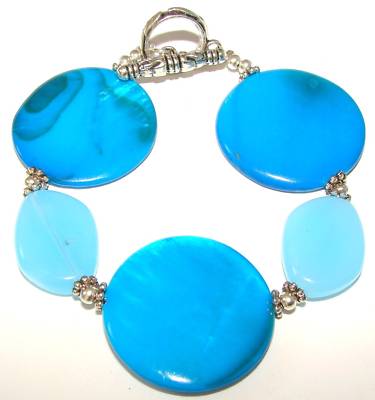 BLUE SHELLS Milk GLASS BEADS BRACELET Paua SEASHELLWide
