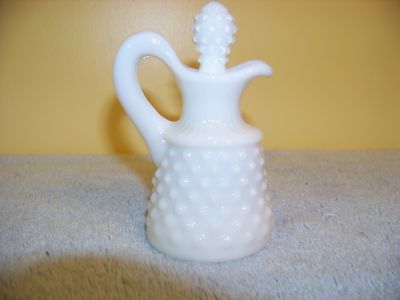 VINTAGE HOBNAIL MILK GLASS CRUET WITH STOPPER