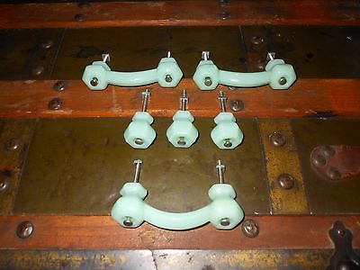 Jadite Hexagonal green Milk-Glass Bridge Drawer Pulls & Knobs/New