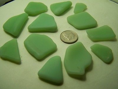 Title (ebay affiliate link): 11.25 FT BRAGG BEACH GLASS, 12 BEAUTIFUL SEA TUMBLED ASST GRN MILKGLASS GEMS