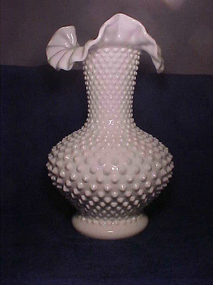 Title (ebay affiliate link): Vintage Fenton Art Glass Milk Glass Hobnail Flower Vase Double Crimped Rim