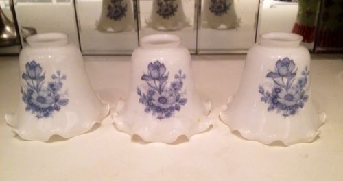 Title (ebay affiliate link): 3 Vtg White Milk Glass W/ Blue Flowers Ruffled Light Shade Fan Chandelier Sconce