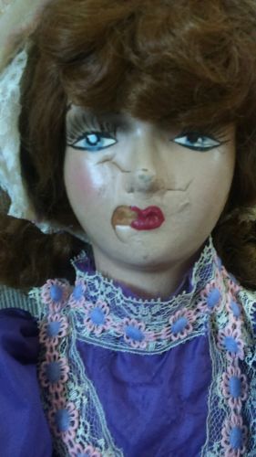 Title (ebay affiliate link): ANTIQUE FRENCH BOUDOIR DOLL WOOD HAND PAINTED VICTORIAN COMPOSITION