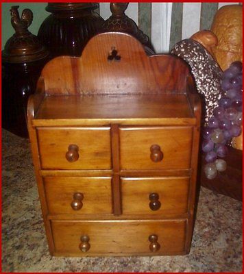 Primitive Antique Style Wood Apothecary Spice Chest Cabinet 5 drawers