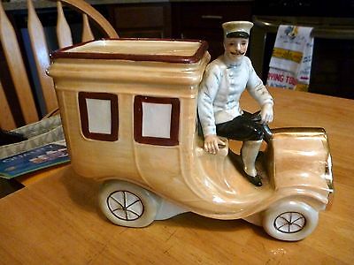 Vintage Porcelain Lusterware Antique Car & Driver Figural Bank - Nice!