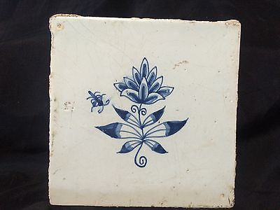 VERY EARLY ANTIQUE DELFT HOLLAND TILE FLOWER WITH BUG VERY NICE!