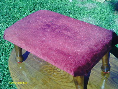 OLD VINTAGE FOOTSTOOL OLD RED VELVET COVER MAPLE LEGS
