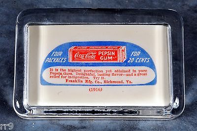 Vintage Coca Cola 1916 Pepsin Gum Glass Paperweight