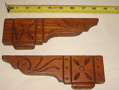 Pair 8" Antique Hand Carved Oak Wood Furniture Trim Salvage Pcs. Left & Right NR