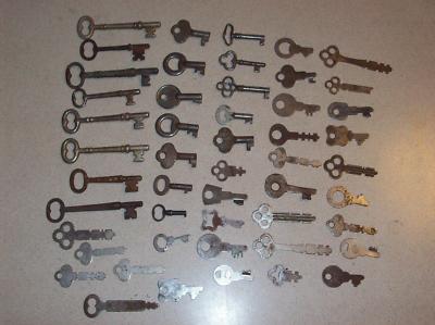 50 ANTIQUE OLD SKELETON FURNITURE ,CABINET LOCKS KEYS