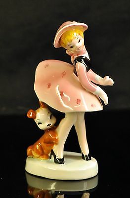 Vintage Enesco Girl with Pink Dress and Puppy Dog Figurine
