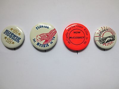 Title (ebay affiliate link): 4 Unusual Celluloid Pinbacks from 1972 - Muskie, McCloskey & Mink for President