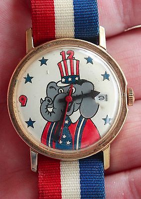 Title (ebay affiliate link): Vintage Republican Elephant Patriotic Watch Red White and Blue Wristwatch Band