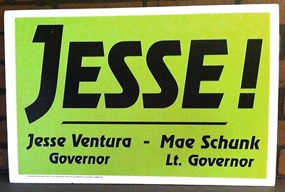 Title (ebay affiliate link): 1998 Jesse "The Body" Ventura For Minnesota Gov. Political Campaign Sign