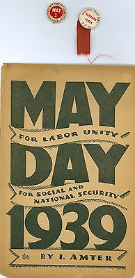 2 Vintage 1939 Communist Party USA May Day Political Pinback Buttons & Booklet