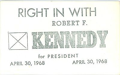 Vintage 1968 New York Senator Robert Kennedy Political Campaign Election Card