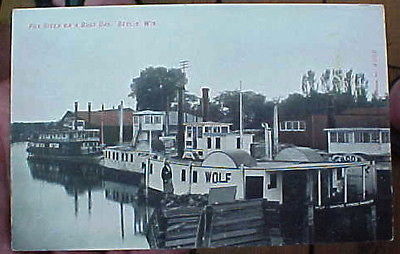 ca 1910 PADDLE RIVER BOATS Fox River, Berlin, Wisconsin Real Photo Postcard RPPC