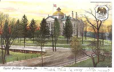 Early 1900s postcard,Augusta Maine,,,Capitol Bldg,seal with New Mexico on right