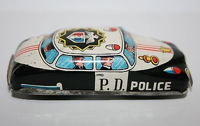 Vintage TN Made in Japan Tin Litho Police Car Department Friction Toy PD Cop Old