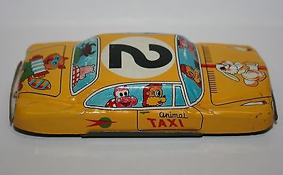 Vintage TN Made in Japan Tin Litho Yellow Animal Taxi Toy car Old Metal