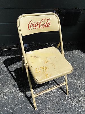 Vintage Advertising Folding Chair Coca Cola Soda Embossed Steel Metal 1960s Old