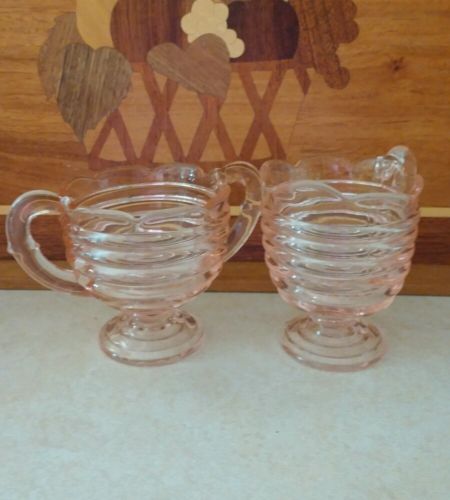 Title (ebay affiliate link): VINTAGE DEPRESSION GLASS PINK RIBBED BODY&SCALLOPED RIM CREAM AND SUGAR BOWL
