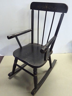 Title (ebay affiliate link): Vintage Black Wooden Children's Rocking Chair w/ Music Box