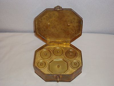 Old Vintage metal Brass Octagon 6 Compartment Trinket Jewelry Storage Box handle