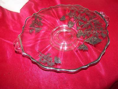 Sterling Silver Overlay Depression Glass Platter