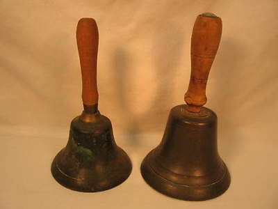 Two Old Bronze School Bells With Wood Handles