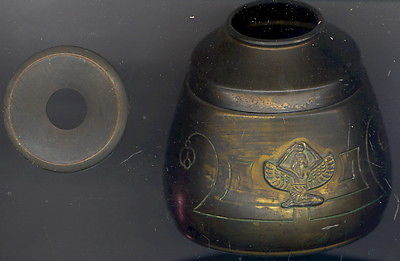 Title (ebay affiliate link): MARKED BENEDICT, KARNAK BRASS, EGYPTION REVIVAL VESSEL, HAIR RECEIVER? 2 LIDS