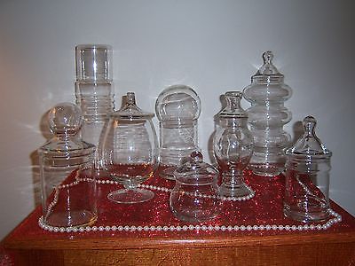11 Vintage Clear Glass Apothecary Jars Wedding Party Candy Bar/Buffet/Table Lot