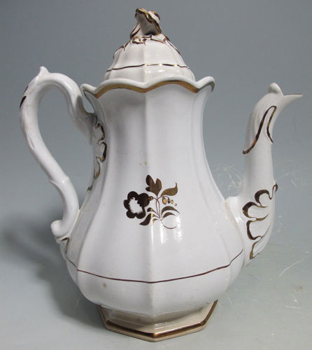 Antique c1860 White Ironstone China Morning Glory Copper Luster Tea Pot #1 yqz
