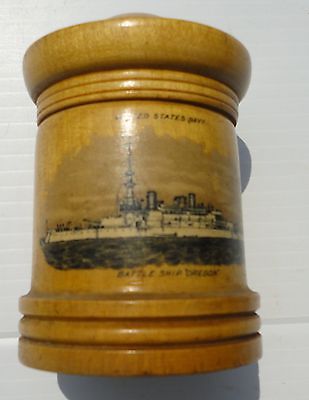 RARE UNITED STATES NAVY MAUCHLINE BANK, BATTLE SHIP OREGON TREEN WARE WOOD