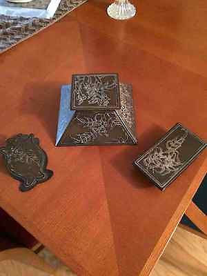 Wonderful Bronze and Sterling Arts & Crafts Desk Set Inkwell etc. Dated 1912