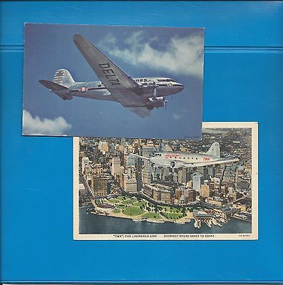 TWA/Delta Airlines issued lot of 2 DC-3 postcards