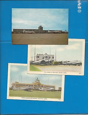 TCA/Canadian Airlines props at Canadian airports lot of 3 postcards