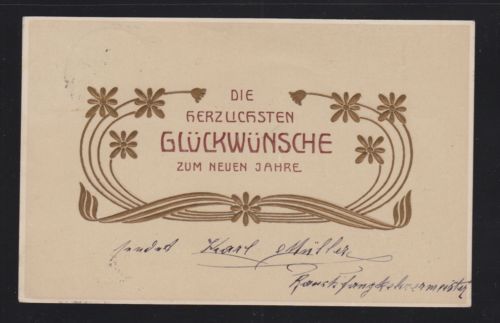 AUSTRIA 1908 HAPPY NEW YEAR ART NOUVEAU POSTCARD FREISTADT TO LINZ