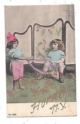 UDB Postcard-2 LIttle Cute Gitls Greeting You to Horrnell, NY in C. 1901-07-VF